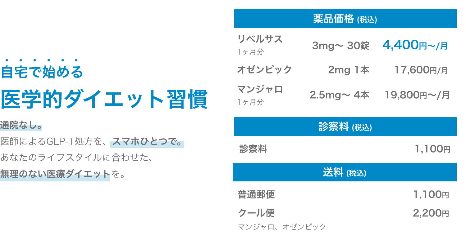 通院なし。医師によるGLP-1処方を、スマホひとつで。