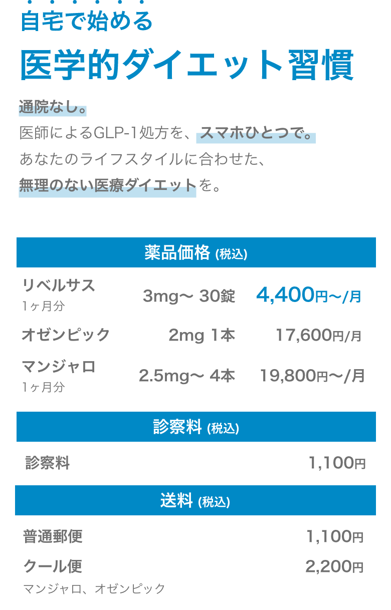 | リベルサス | 3mg | 30錠(1ヶ月分) | ¥4,400 |